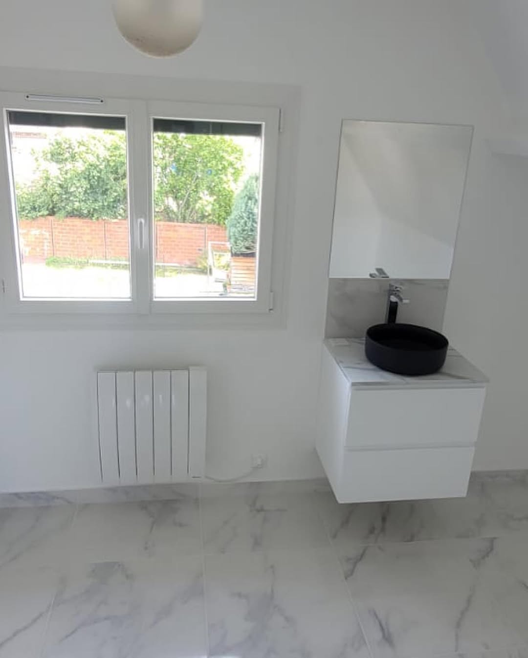 Pour ce projet, nous avons imaginé une salle de bain élégante et lumineuse, en misant sur la sobriété des matériaux et un aménagement fonctionnel.